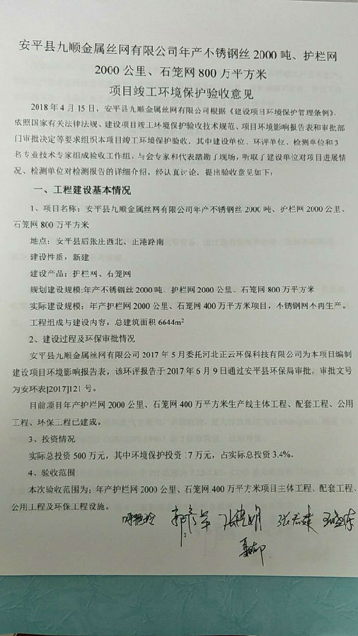安平縣九順金屬絲網有限公司環保驗收公示-2