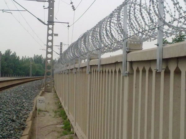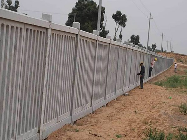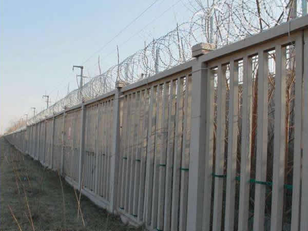 鋼筋混凝土立柱金屬網片防護柵欄由:鋼筋混凝土立柱、金屬網片及連接部件組成,防護高度1.8m。